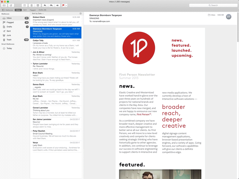 First Person was a brand new company in need of a wowing website to promote the companies skills and expertise. With new name, new logo, and new approach to creative work, we needed to explain how we worked, and display the design chops to back up our claim.